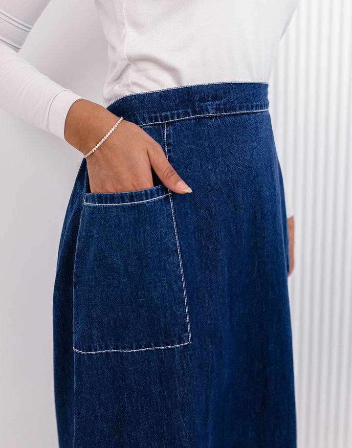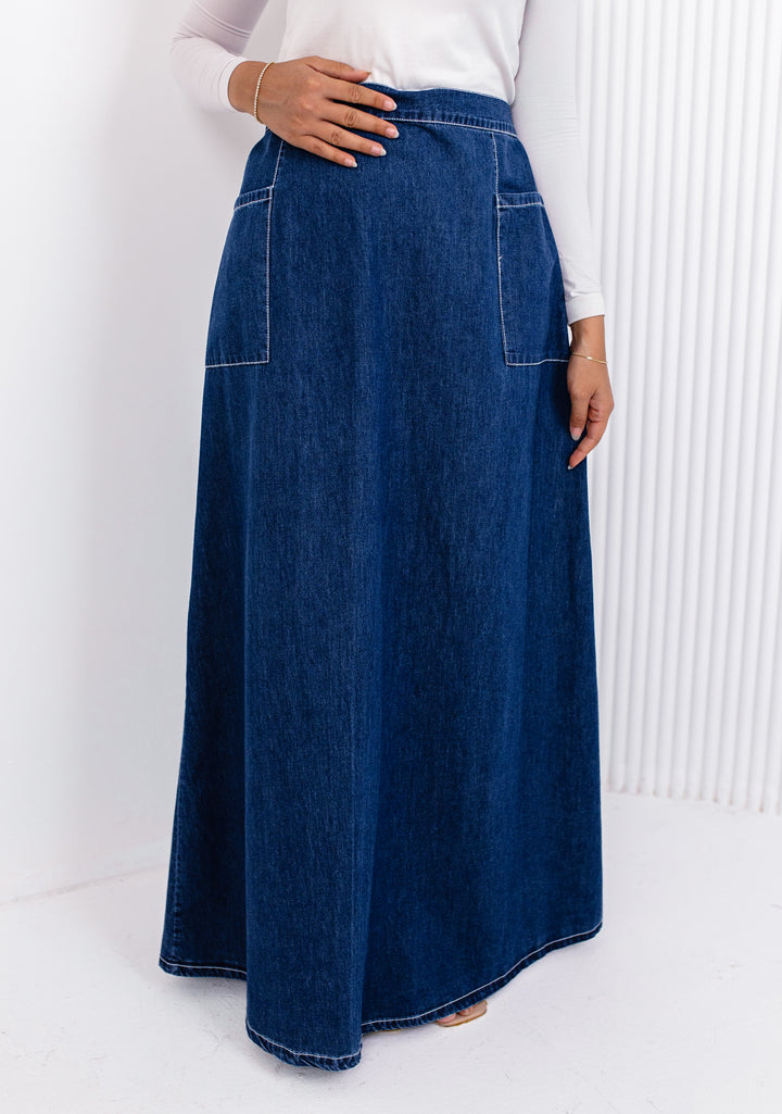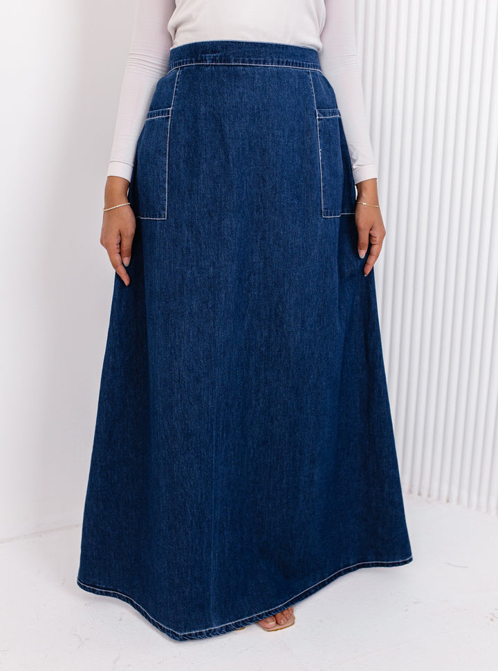 Denim A-line skirt made from soft cotton. Practical, comfortable, and perfect for college or everyday wear—an essential piece for every girl’s wardrobe.