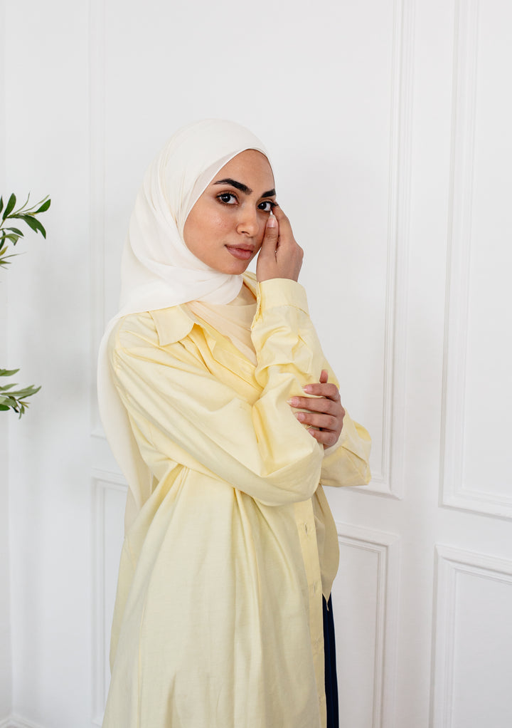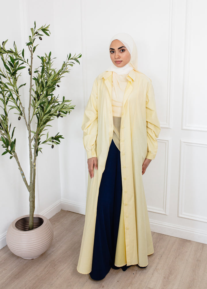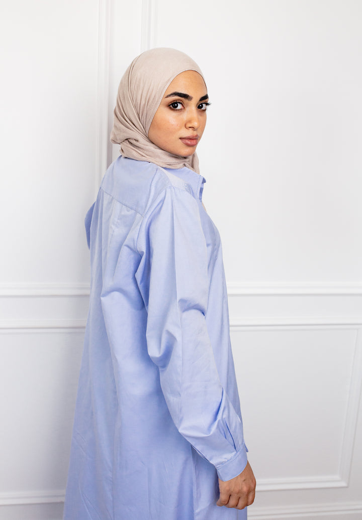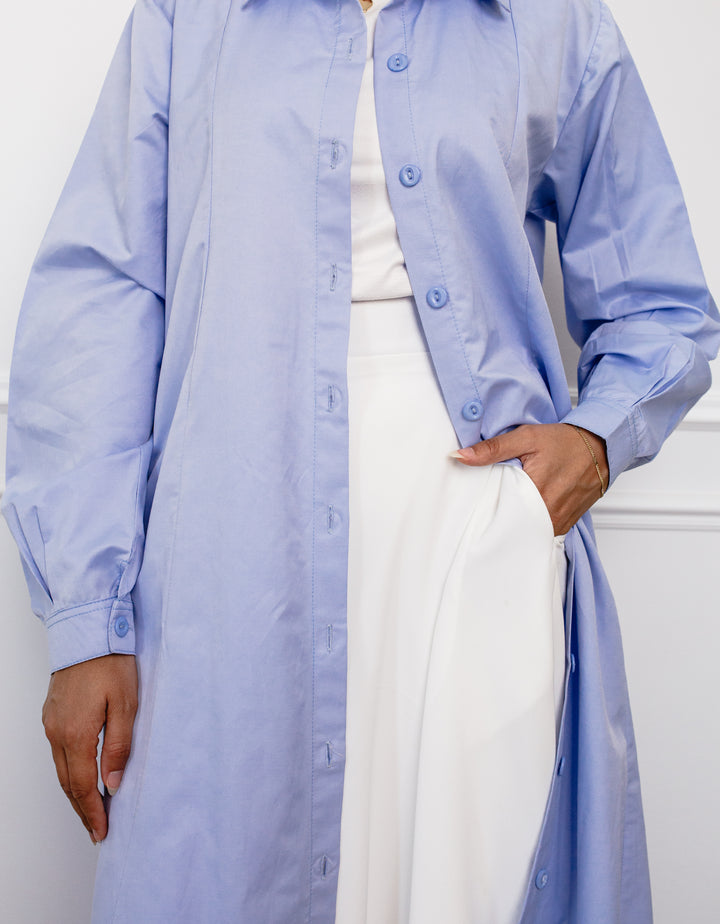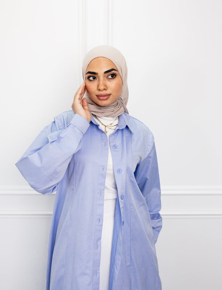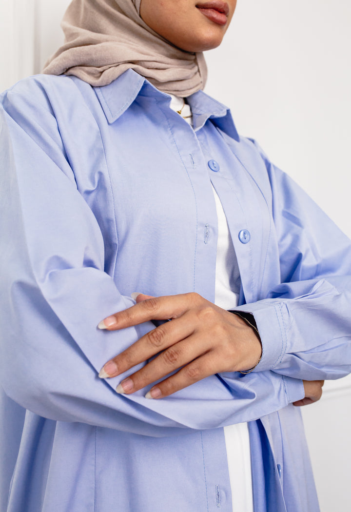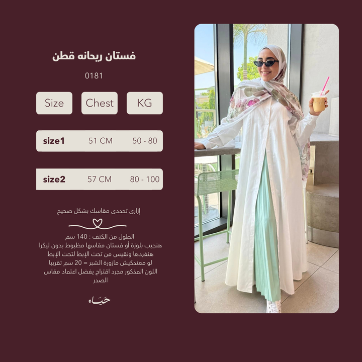 Reyhanna cotton dress-style chemise with simple, elegant cuts. Comfortable and versatile, perfect for multiple styling options. Available in two sizes: fits 50–85 kg and 50–100 kg.