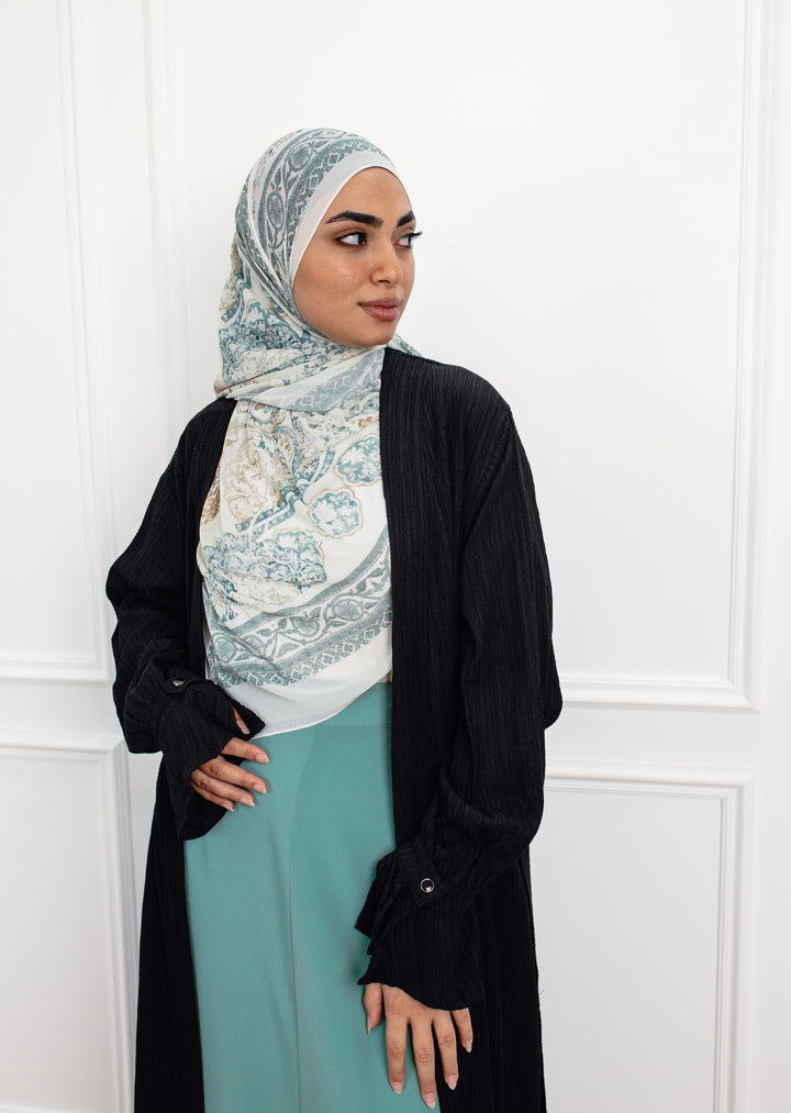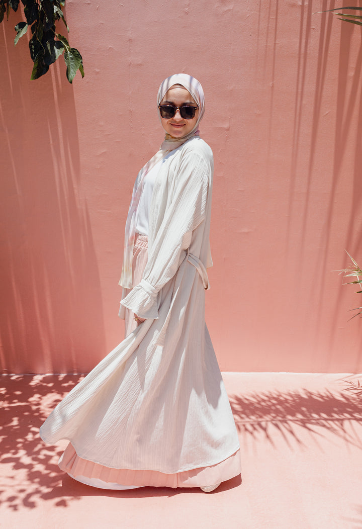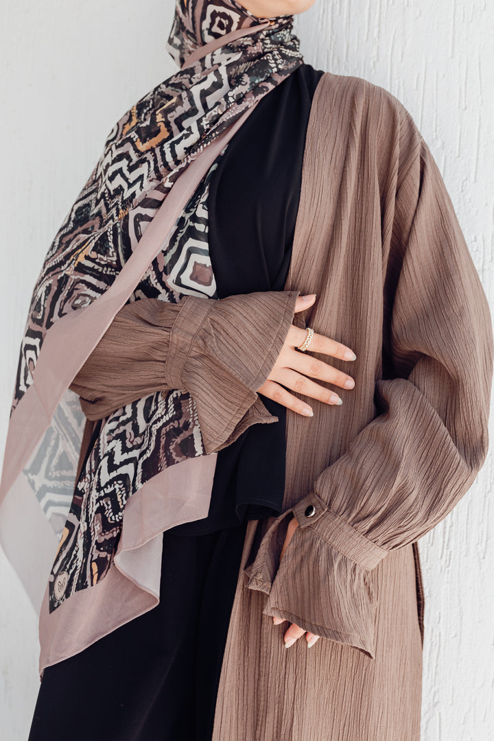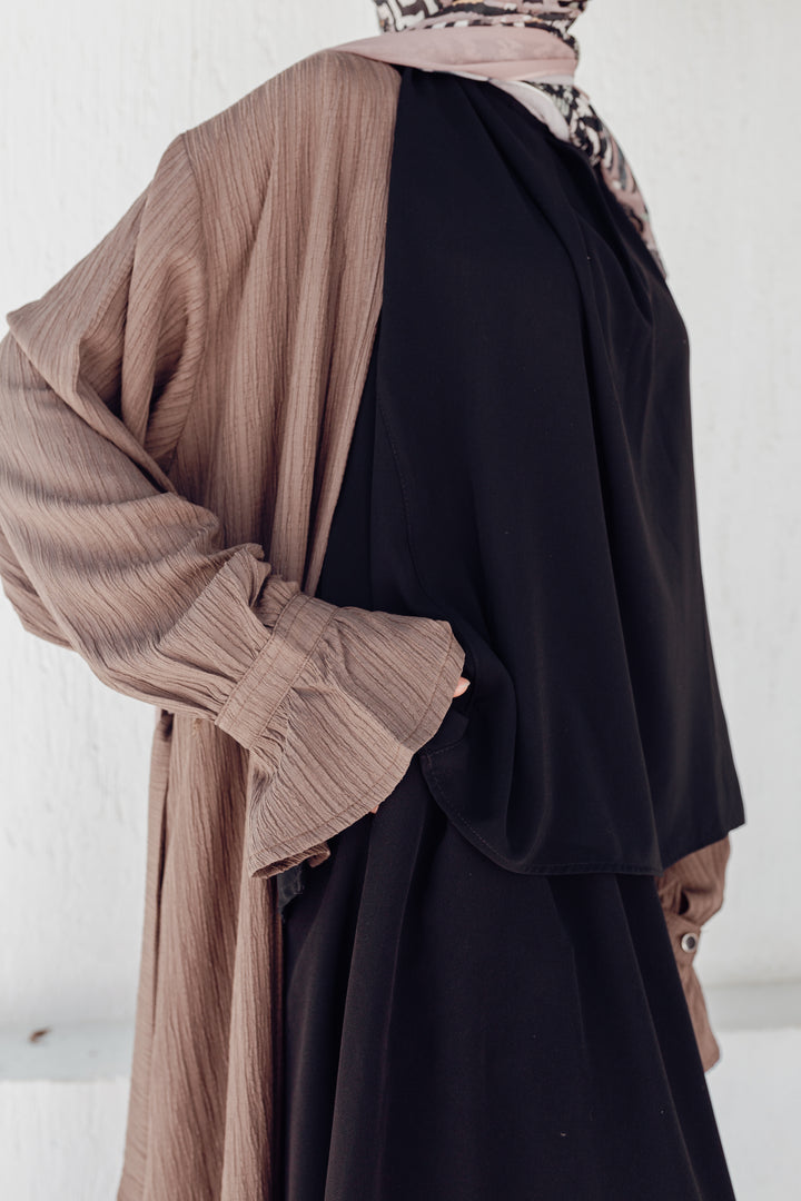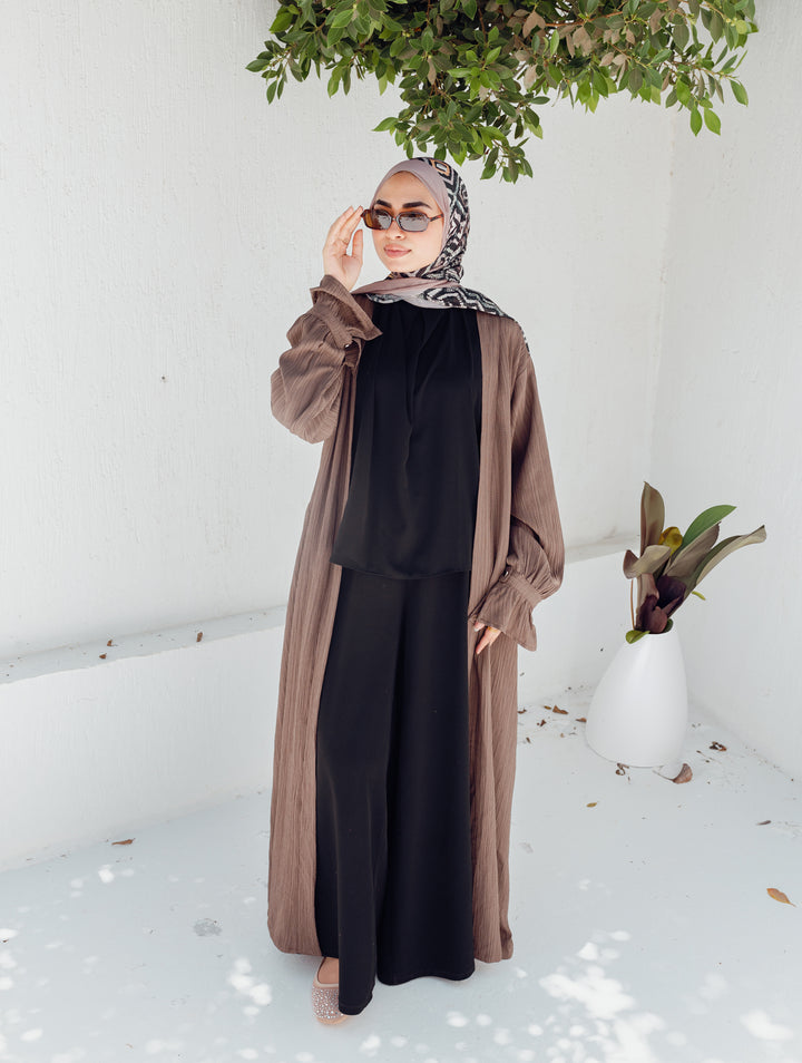 Reqa cardigan, soft, wide, and comfortable, made from premium Fresca fabric. Elegant and versatile, perfect for casual or evening/special occasions.