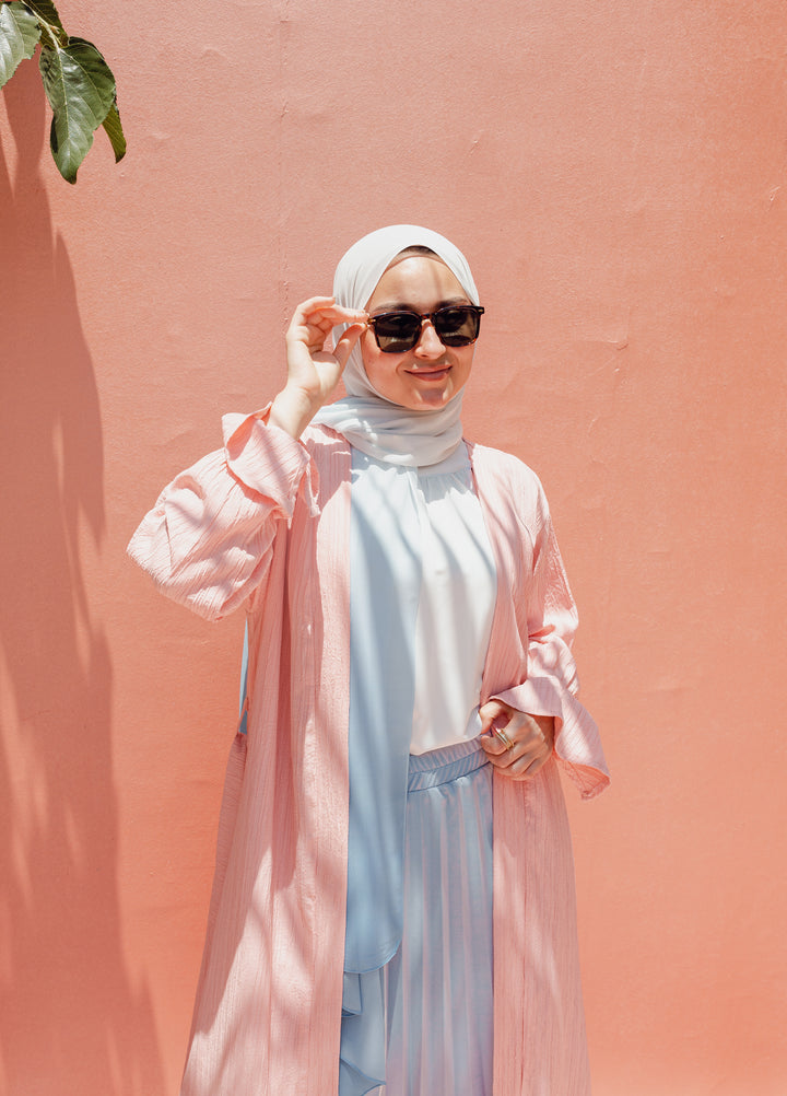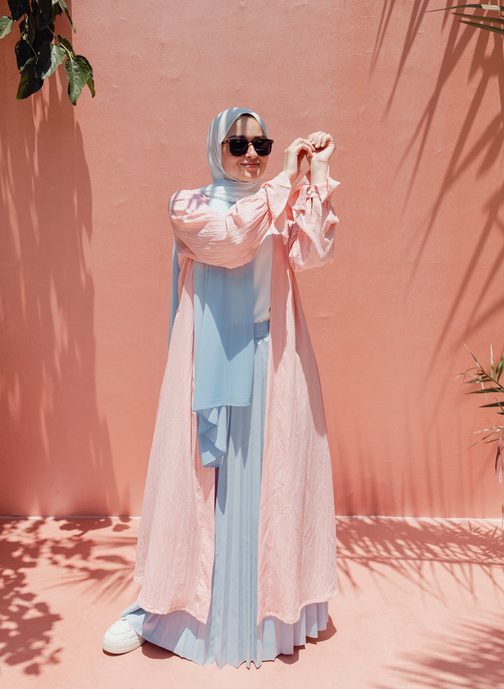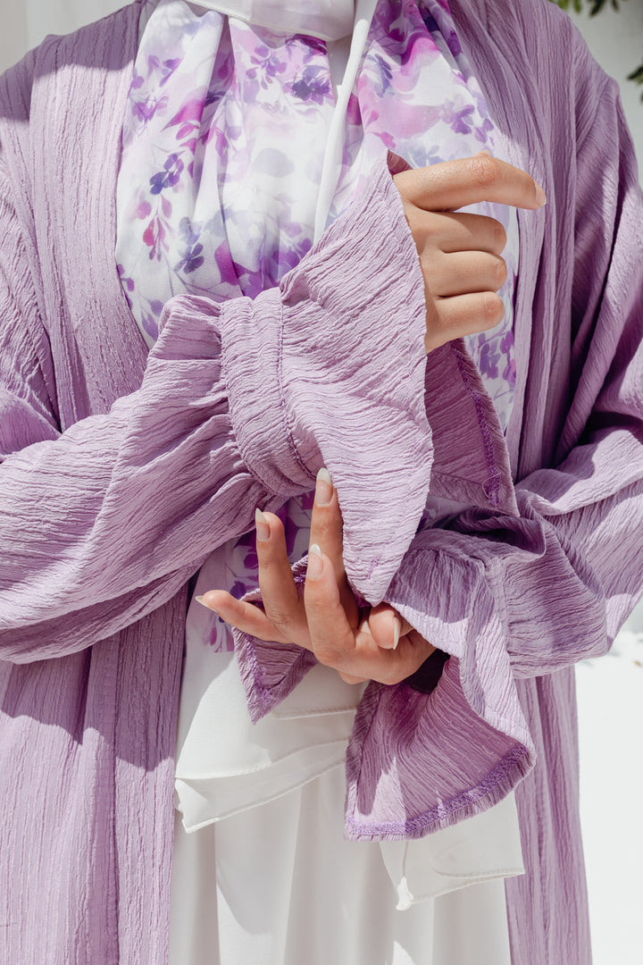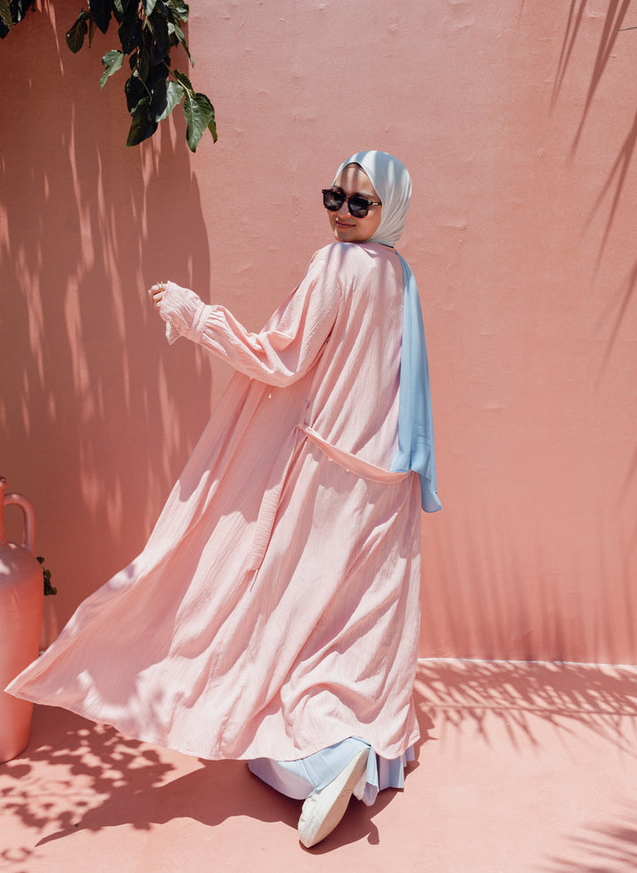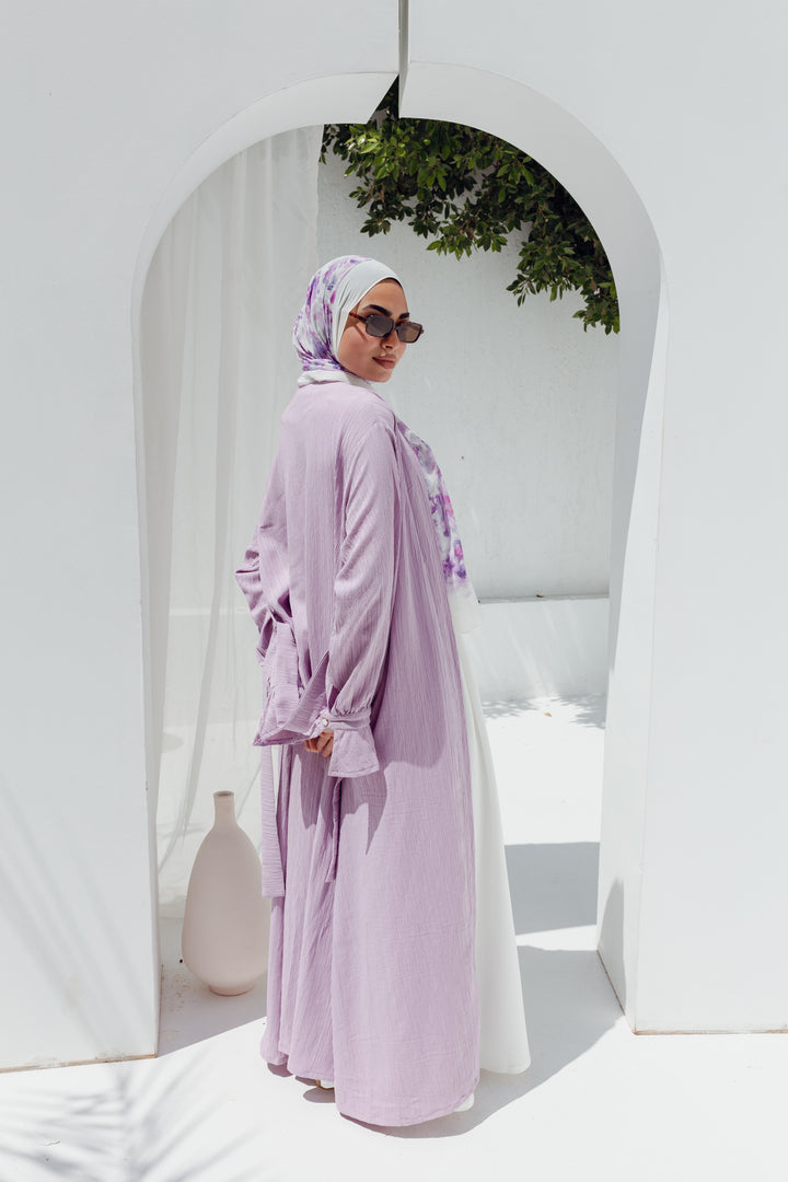 Reqa cardigan, soft, wide, and comfortable, made from premium Fresca fabric. Elegant and versatile, perfect for casual or evening/special occasions.