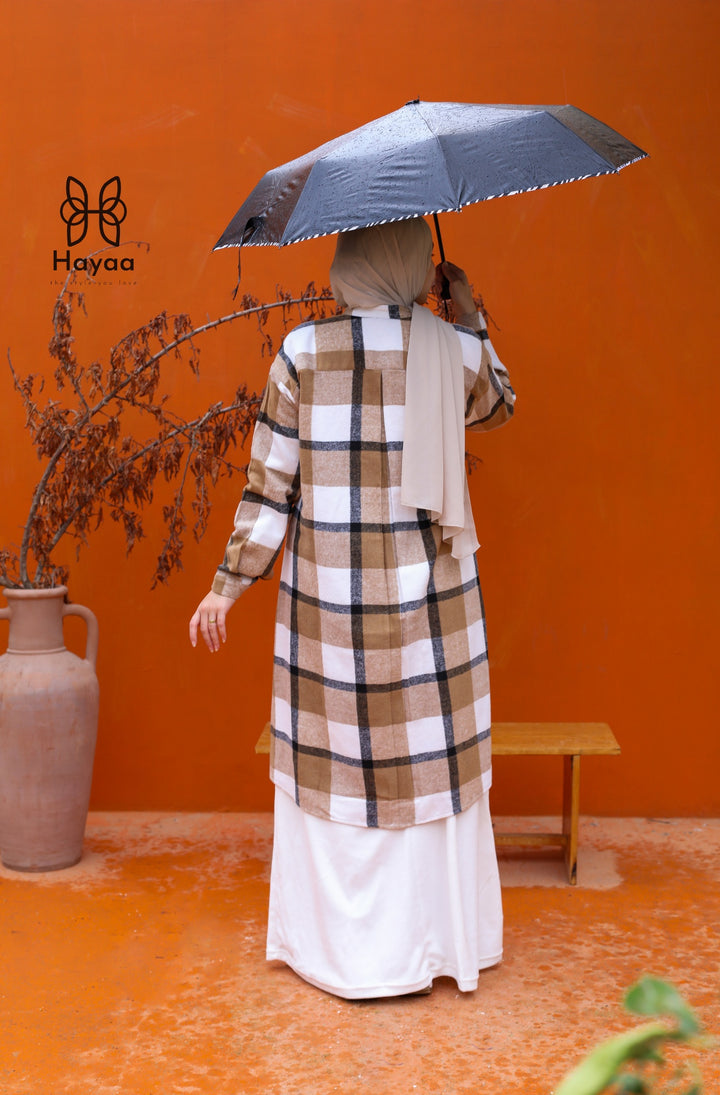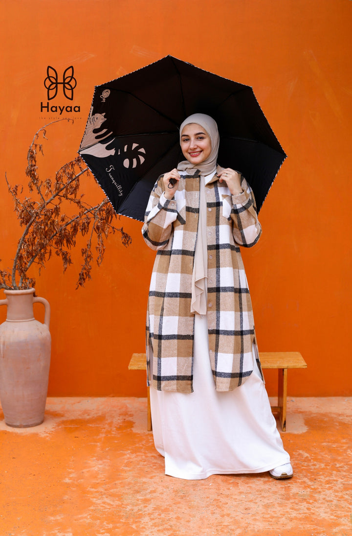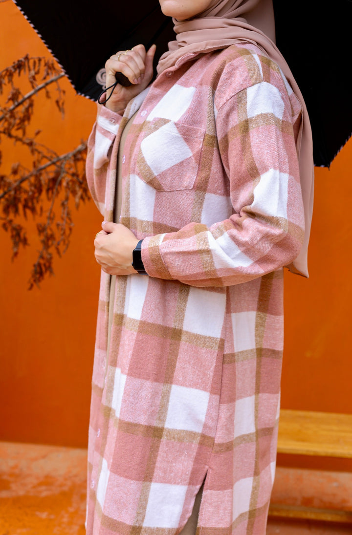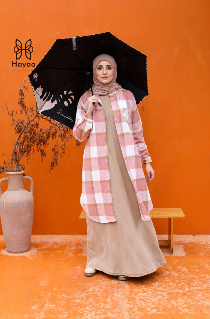 لما تفكري تجمعي بين الدفء والراحة، اختيارك الأمثل هو الشميز الطويل الكاروهات الرائع! 😍 بألوان الزيتي، البيج، والبينك، يضيف لمسة جميلة على الإطلالة في أيام الشتاء.