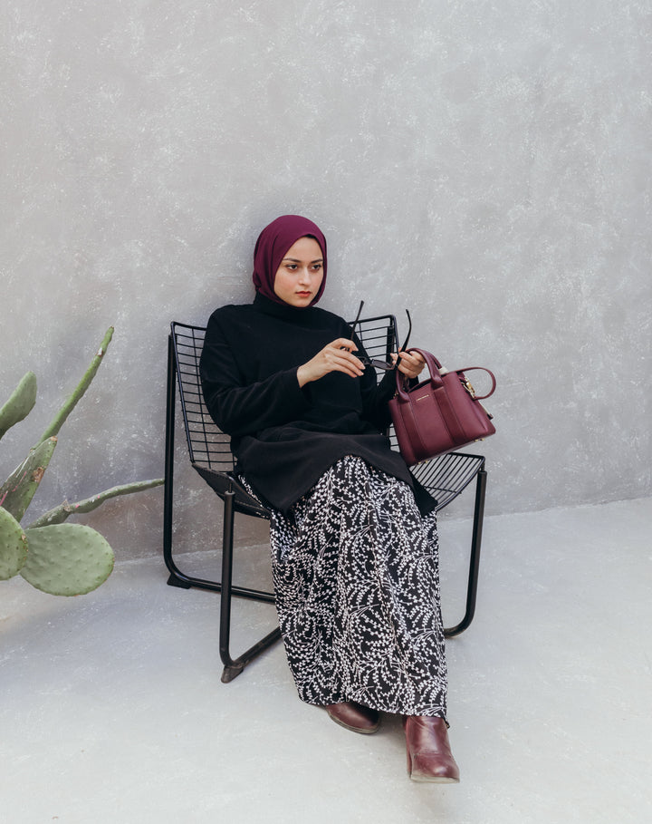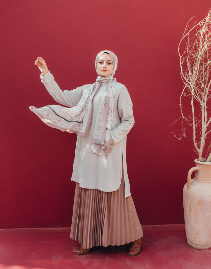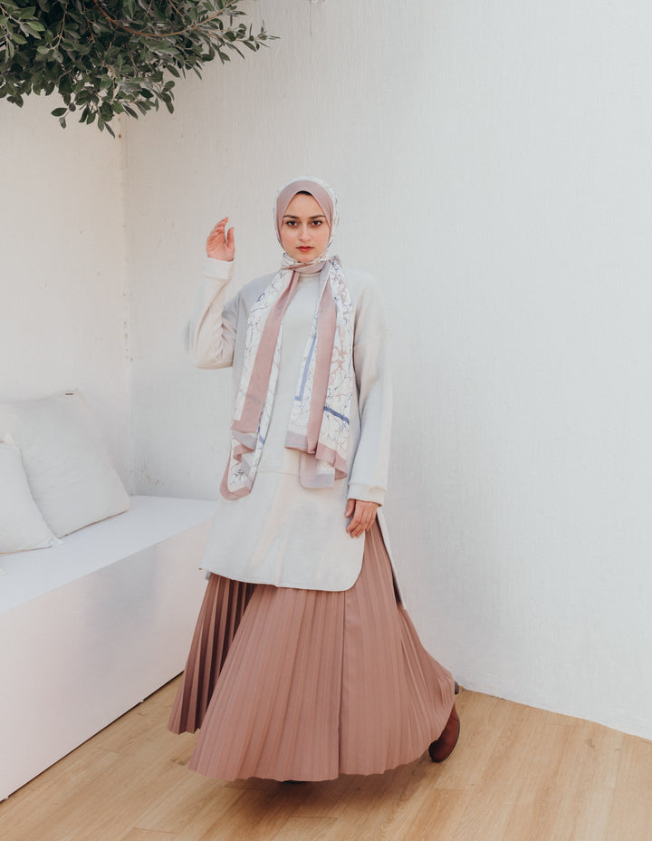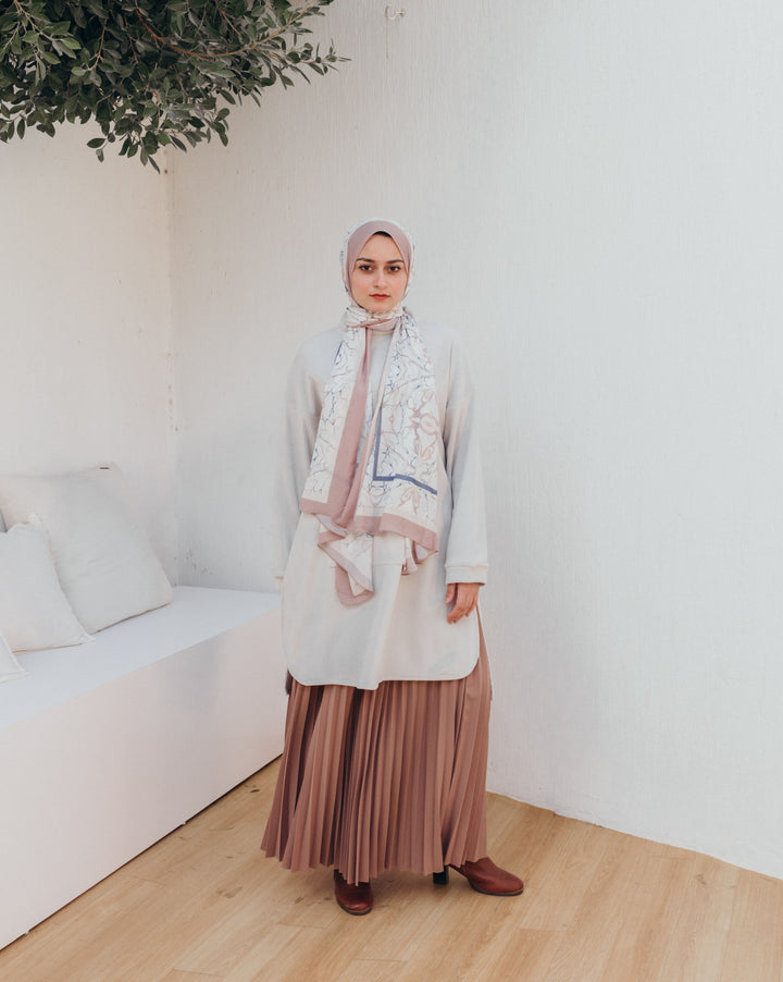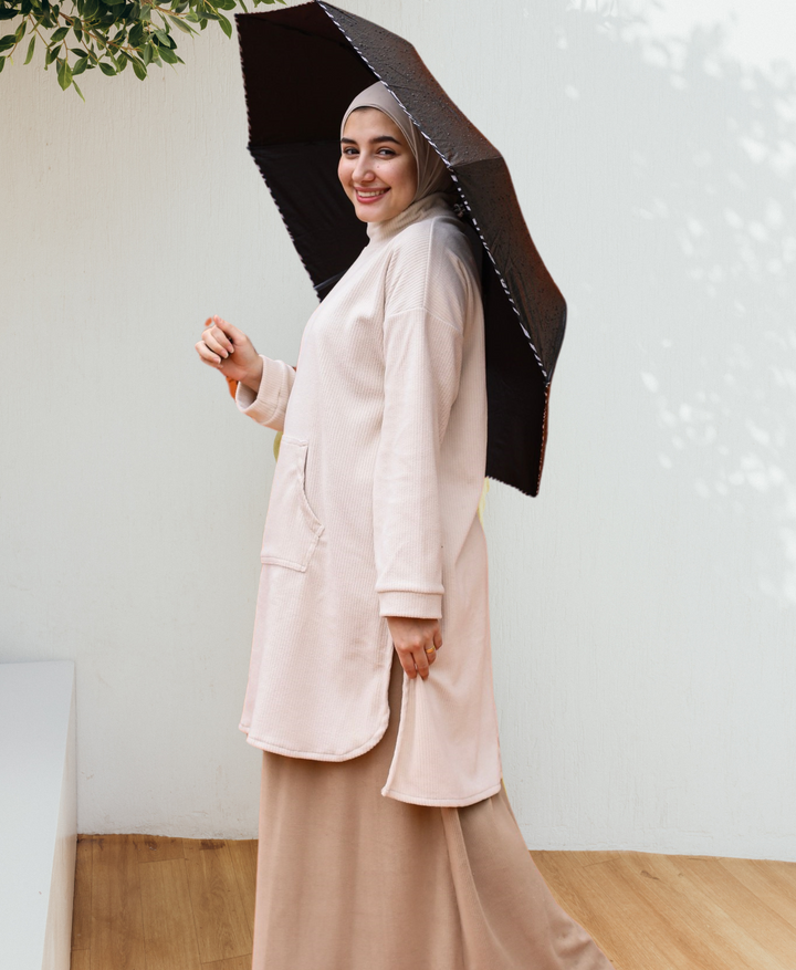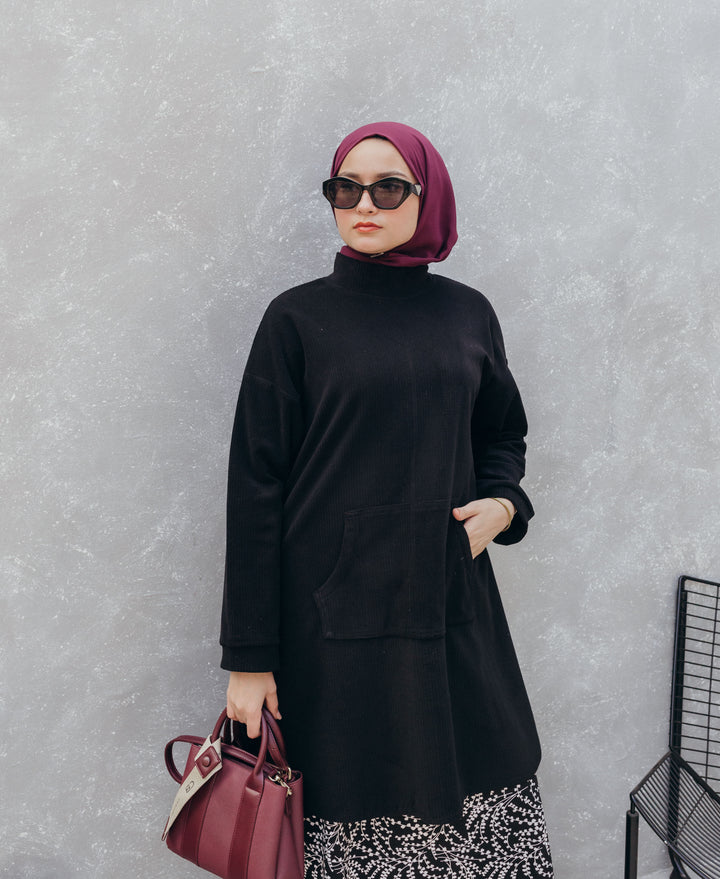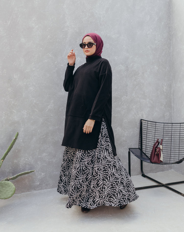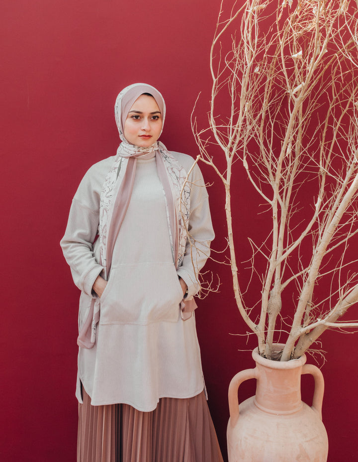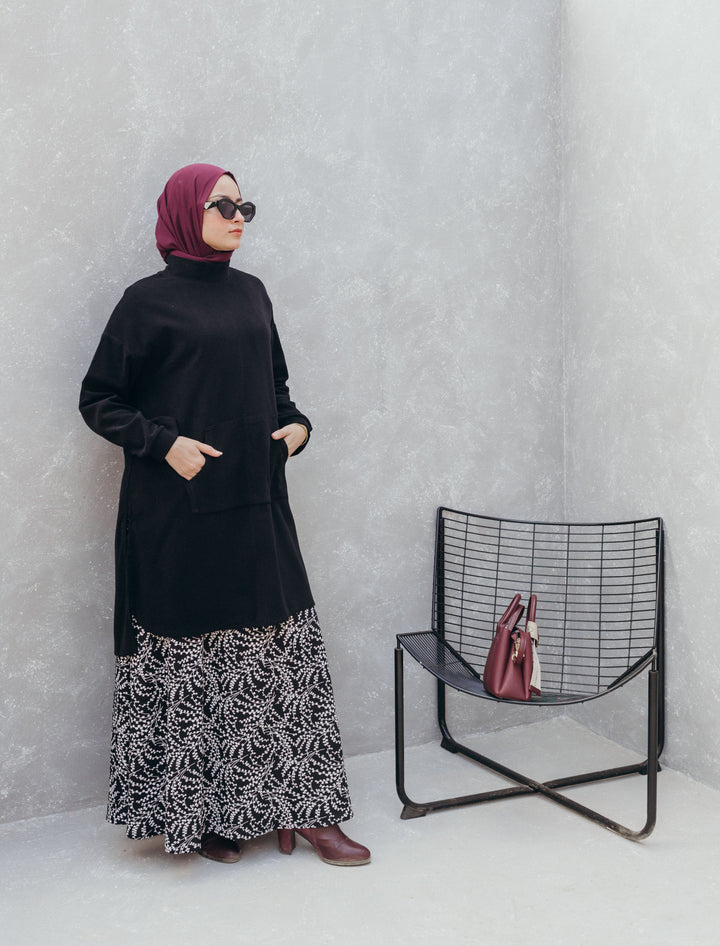 Stay warm and cozy in this oversized Milton sweatshirt. Modest and versatile, it’s easy to style in many ways for a comfortable everyday look