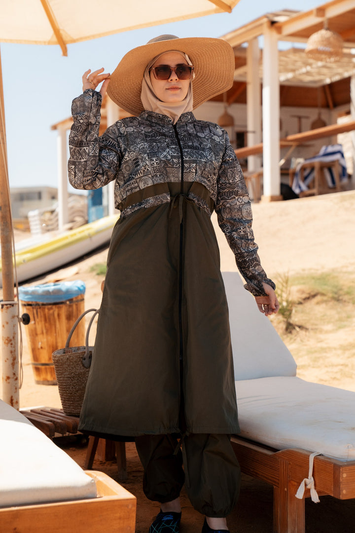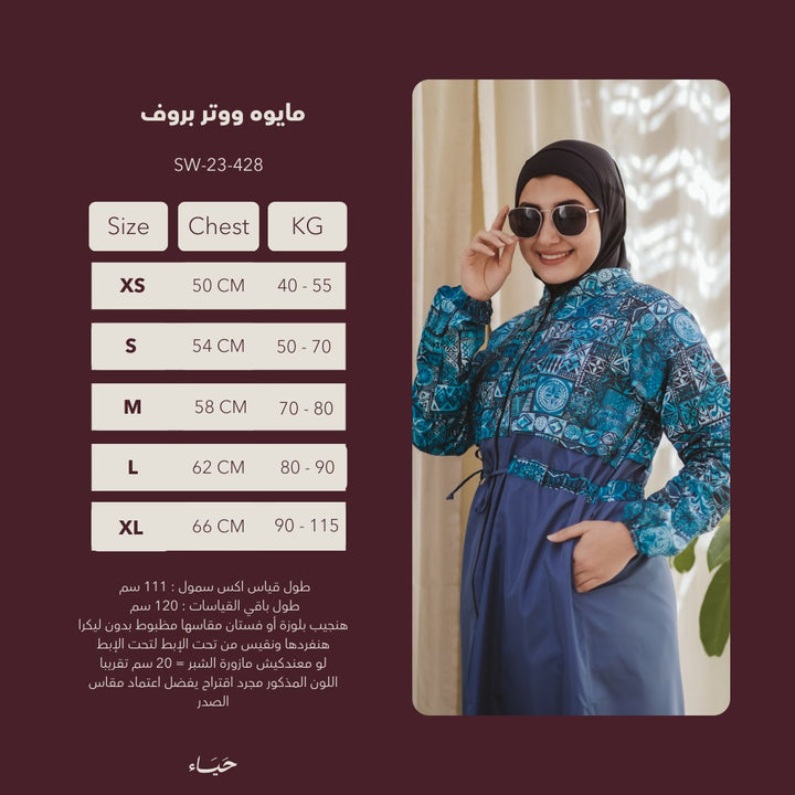 مايوه ووتربروف كود 428عبارة عن قطعتين( تونيك + بنطلون) الخامة وتربروفخامة ممتازة وتقفيل فوق الممتاز- تصميم بسيط -به حزام فى الوسط يمكن قفله للتضيق او فتحه -الجزء العلوي مطبوعه تصميم رقيق وطباعة ثابته