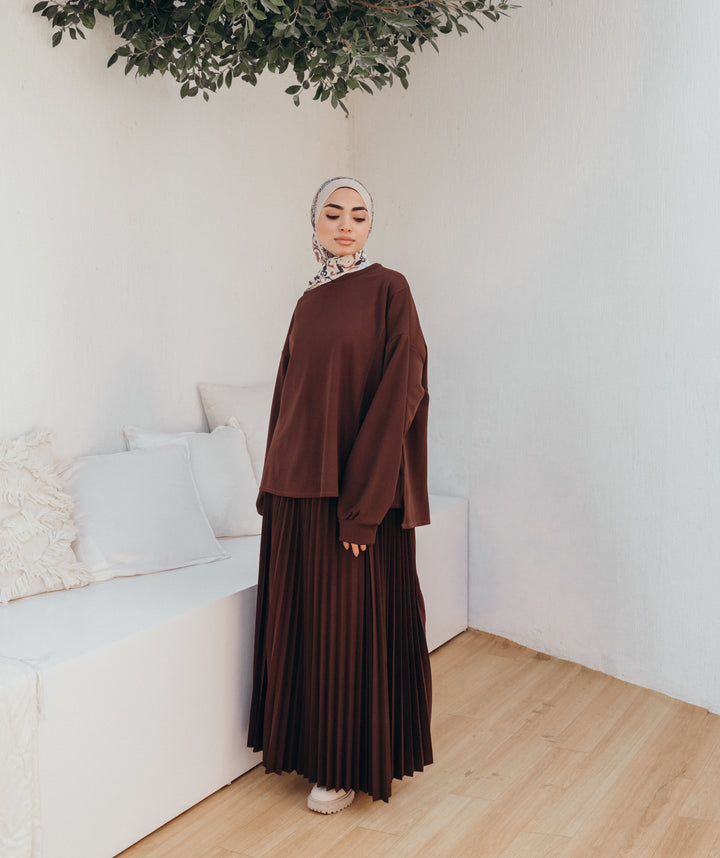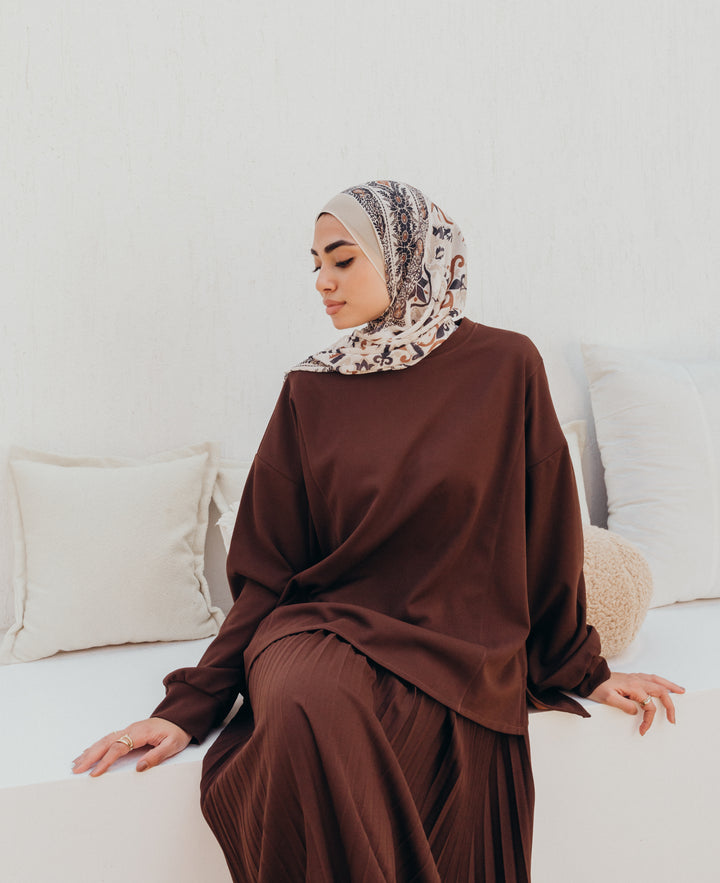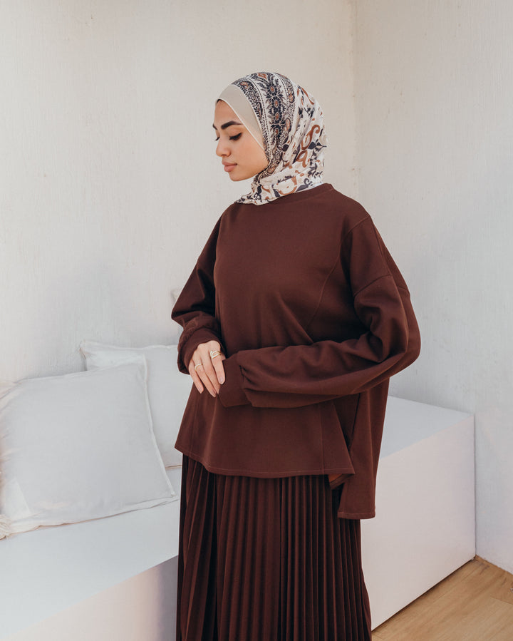 لتكون ساترة وأنيقة , مصنوعه من خامه الأسكوبا الكريب مناسبه للبس طوال العام ماعدا أوقات الحر الشديد , يمكن لبسها على جيبه نفس اللون لتكون سيت كامله او تنوعى لبسها على جيبات متنوعة ساده ومطبوعة , متوفرة بمقاس واحد أوفر سايز مناسب حتى وزن 95 ك