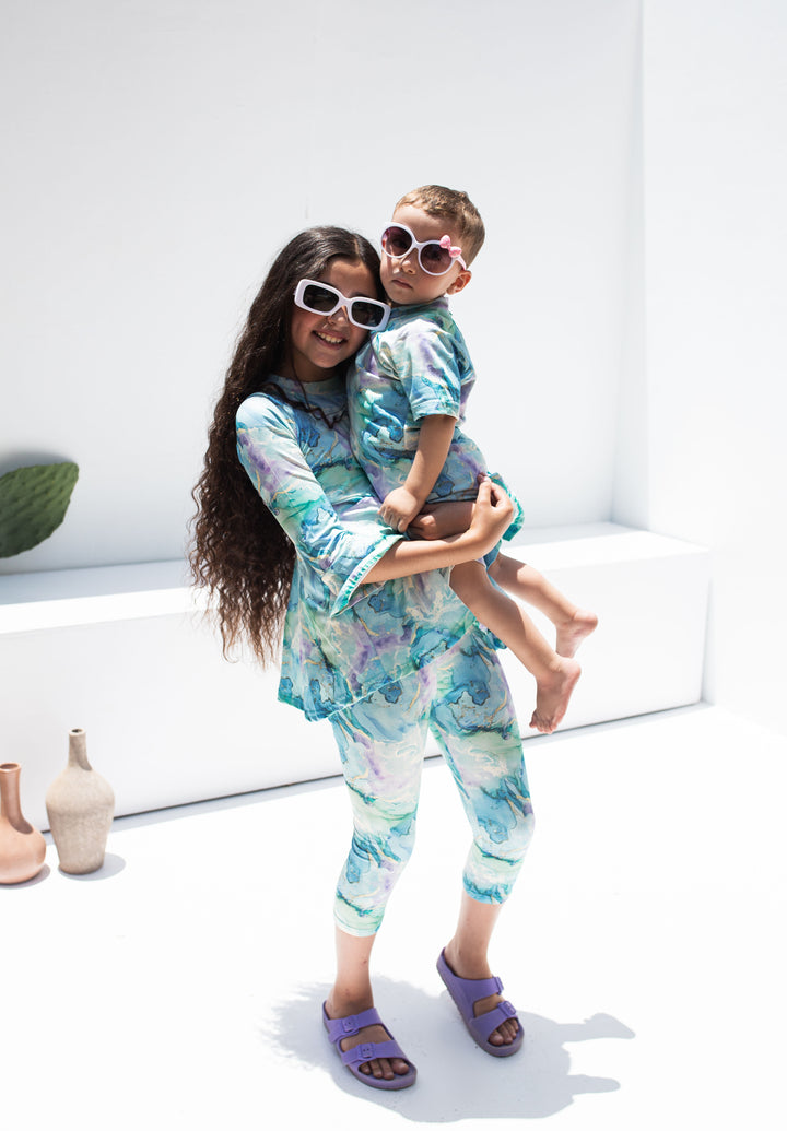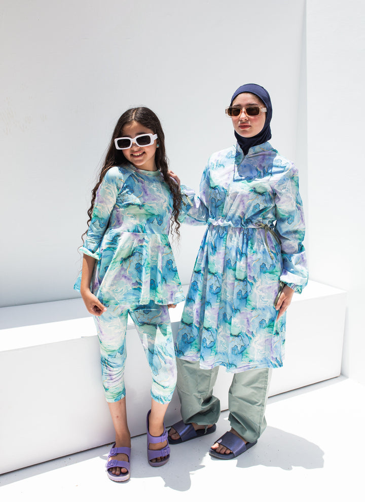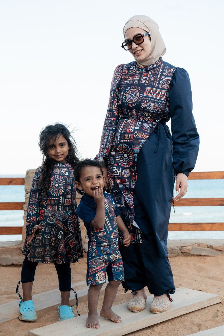 مايوه أطفال توب وبنطلون منفصلين علشان يسمح لهم ب حريه الحركه ويعيش معاهم فتره طويله