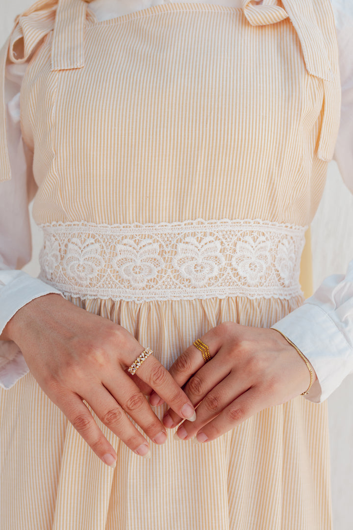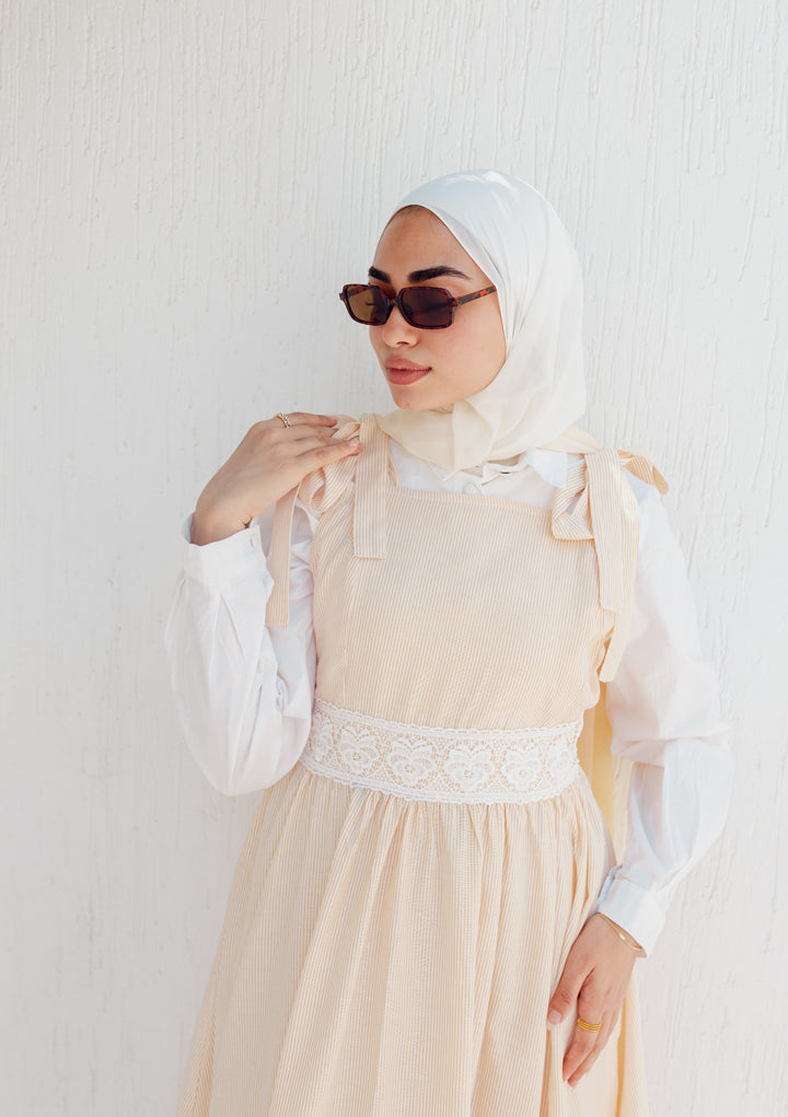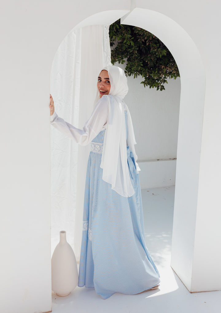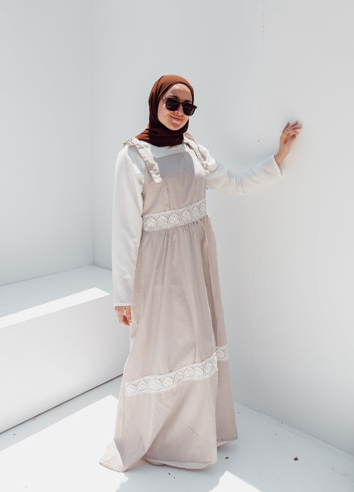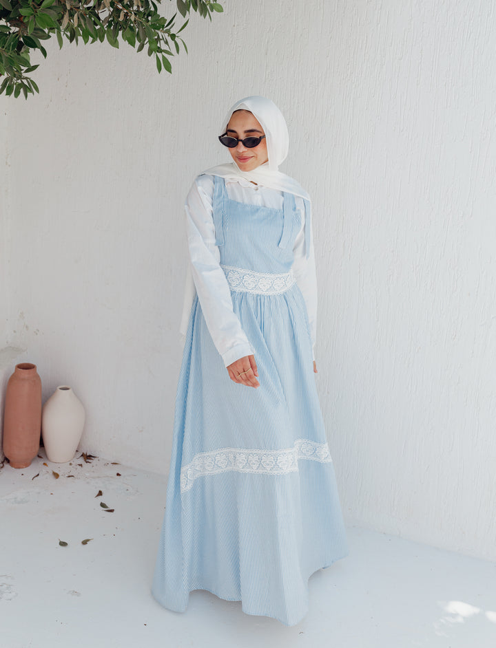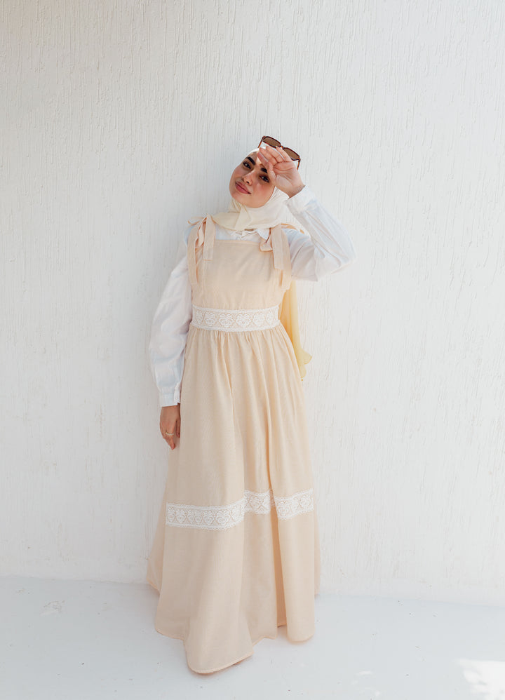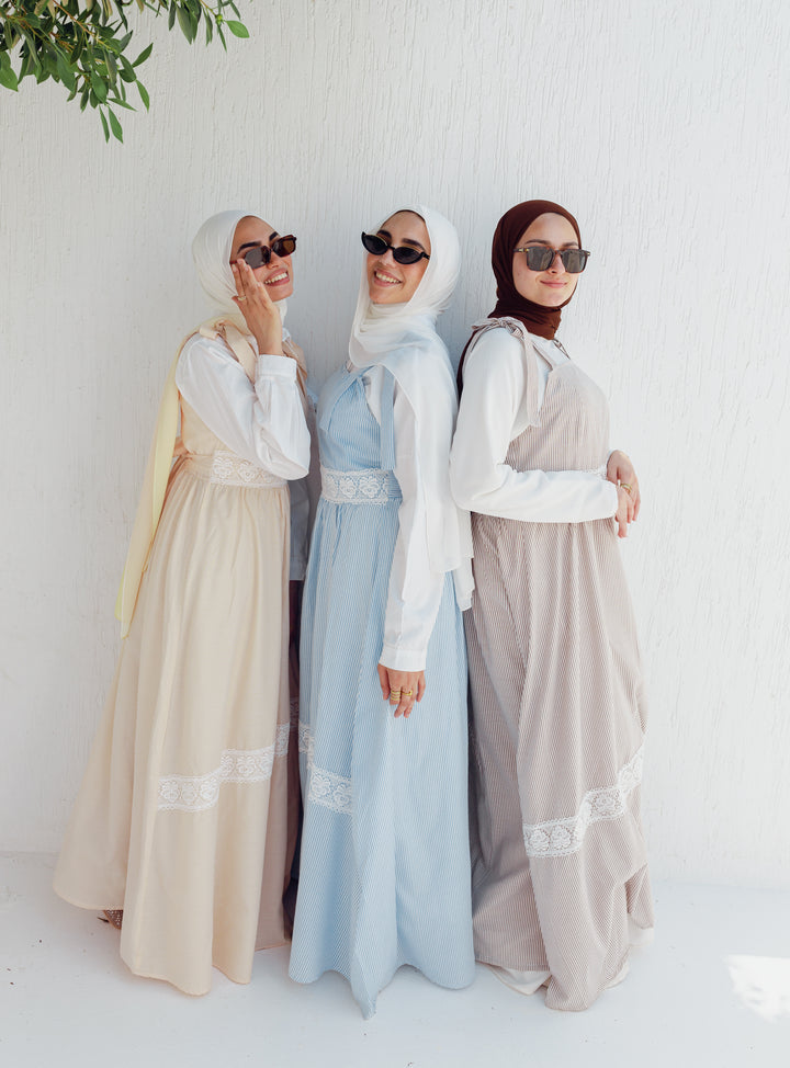 Besan dress in soft pastel tones with a feminine, elegant design. Lace details add a luxurious touch, while the loose fit ensures all-day comfort. Perfect for a stylish and gentle summer look.
