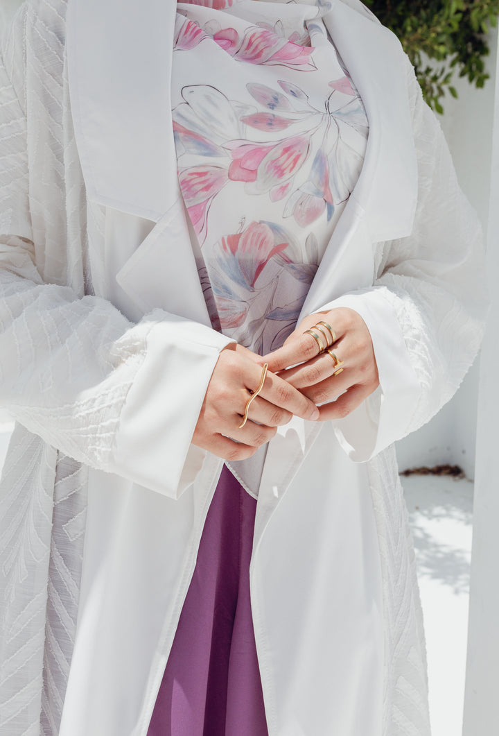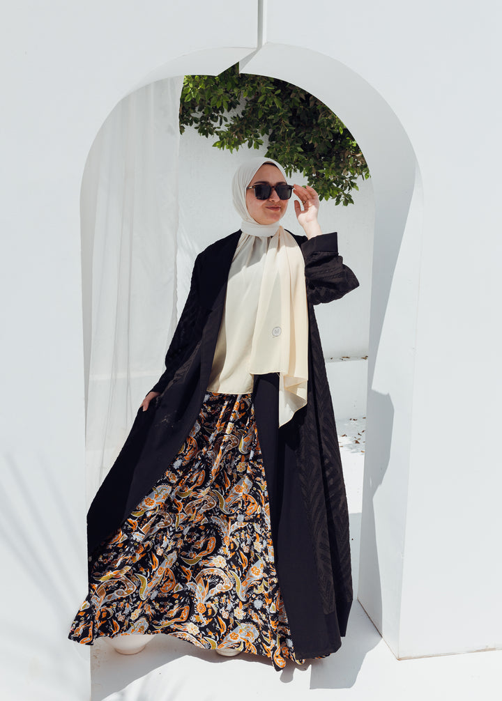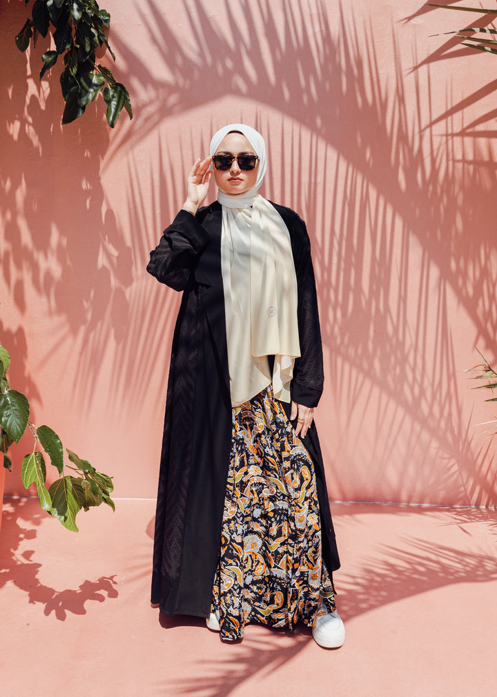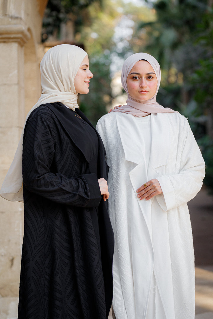 متوفر باللونين الأبيض والأسود، ألوان كلاسيكية تناسب كل الأوقات. الأبيض هيكون مميز جدًا في العمرة، ويديكِ إطلالة بسيطة وأنيقة في نفس الوقت! 🤍