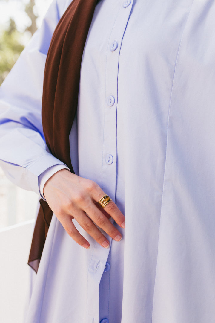 Reyhanna cotton dress-style chemise with simple, elegant cuts. Comfortable and versatile, perfect for multiple styling options. Available in two sizes: fits 50–85 kg and 50–100 kg.
