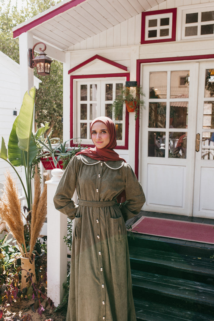 Stay warm and elegant this winter with this soft velvet dress. Featuring a classic button-down front, long sleeves, and a flattering waist belt, it combines comfort and sophistication for your everyda
