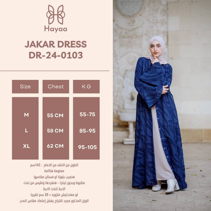 فستان مصنوع من خامه الجاكار المميزه . بسيط وأنيق يمكن فتحه أو قفله حيث انه مزود ب بانده خارجيه اسفلها الزراير حتى يعطى شكل أنيق عند قفلة .التصميم بدون وسط مزود بحزام به كلوش من الجزء الأسفل وبه نفس قصه الكلوش من الكم متوفر بألوان أساسيه تقدرى تستخدمه كارديحان تنسقى تحته جيبه أو بيزك او جيب بنطلون أو تقفيله ويكون عبايه بسيطه وأنيقه - متوفر ب 4 ألوان و3 مقاسات مناسبه من وزن 50 حتى 110 ك يزيد او يقل حسب الطول
