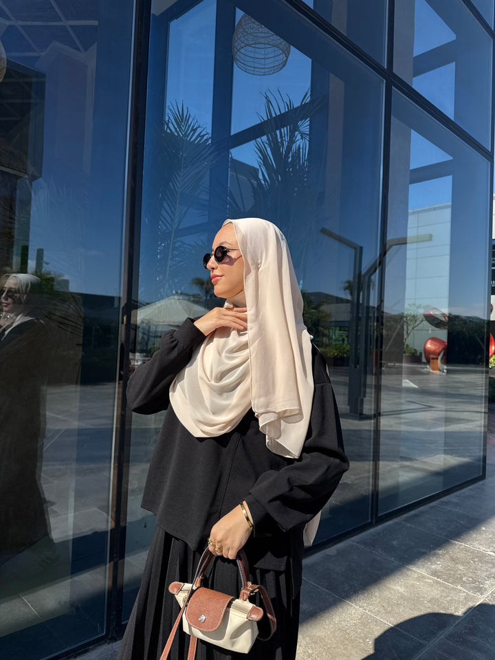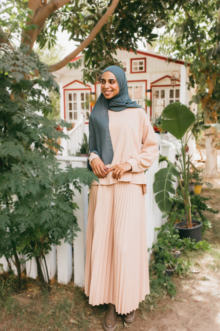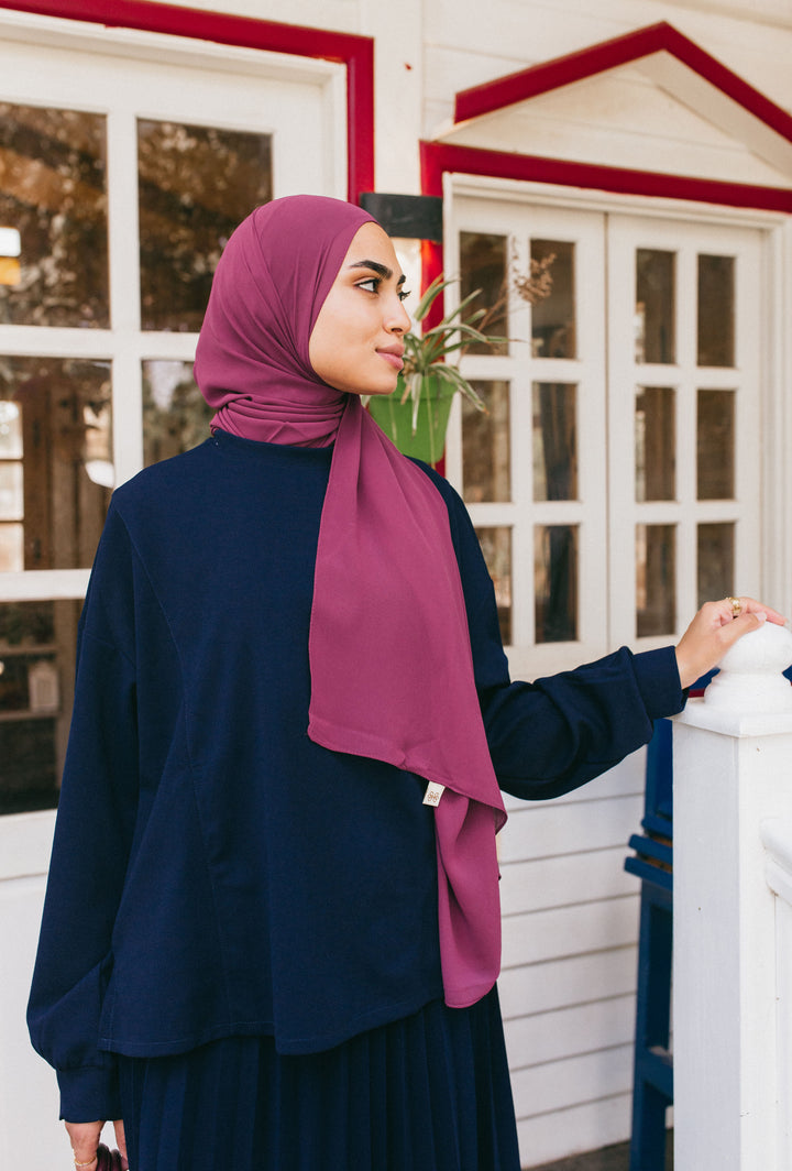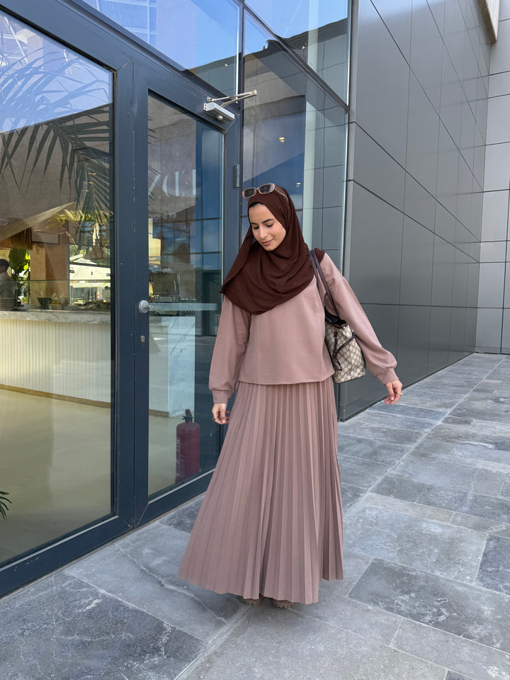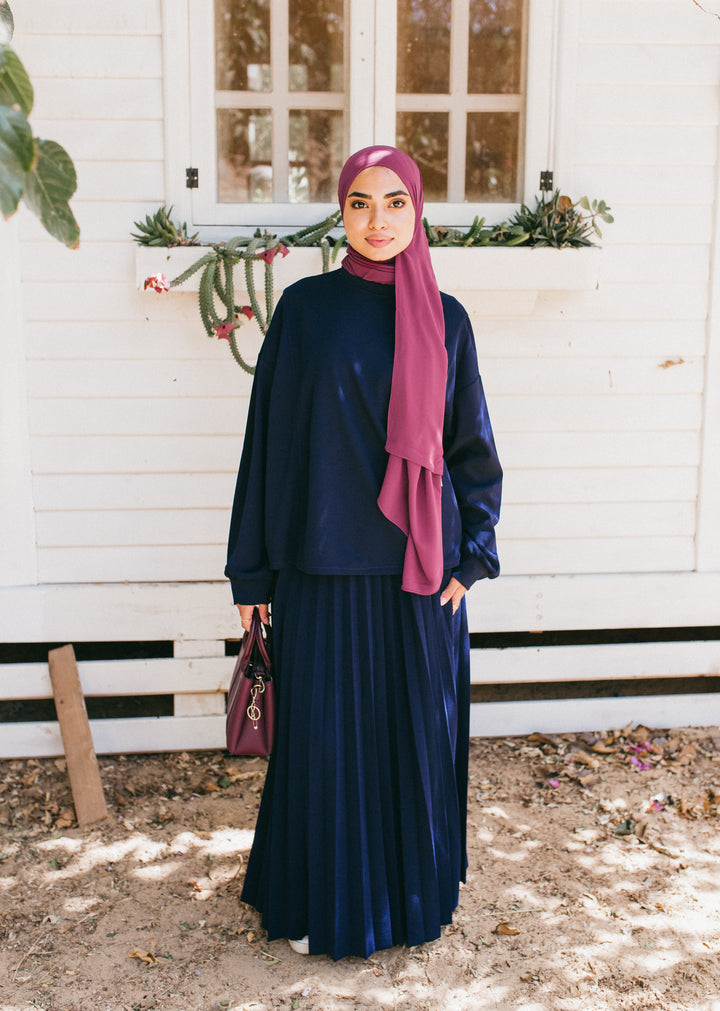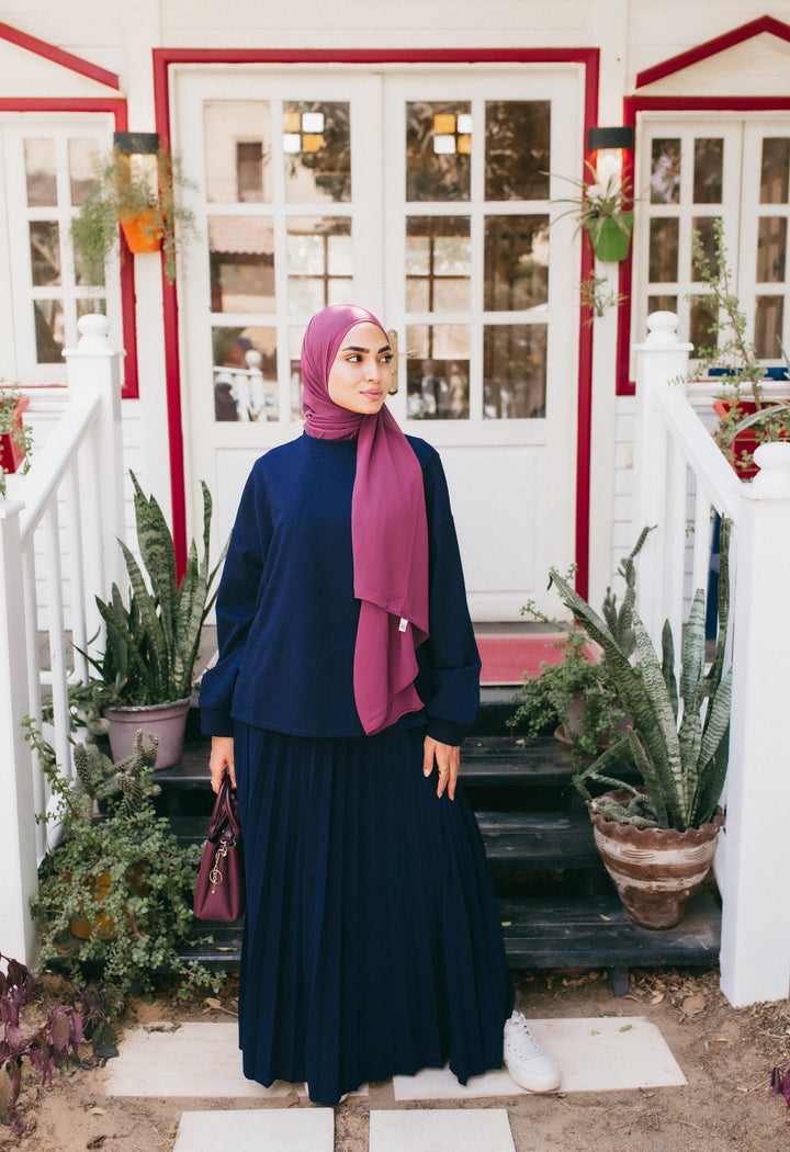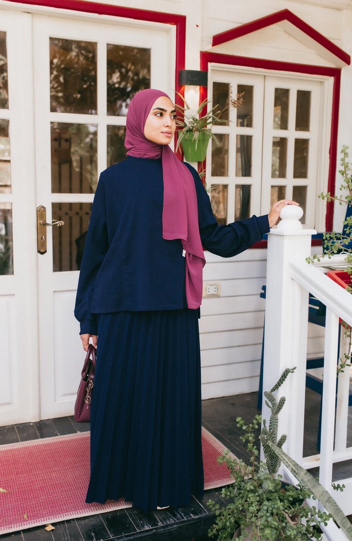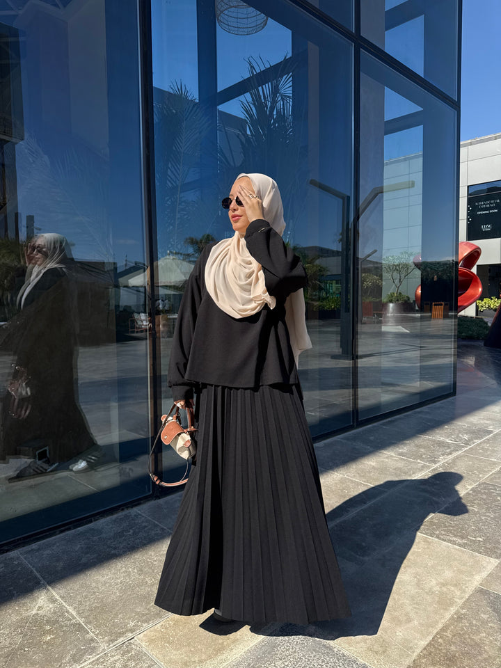 Oversized round-neck princess blouse made from soft scuba crepe. Slightly longer at the back for modesty, versatile for multiple styles, and perfect for year-round wear. Can be paired with matching s