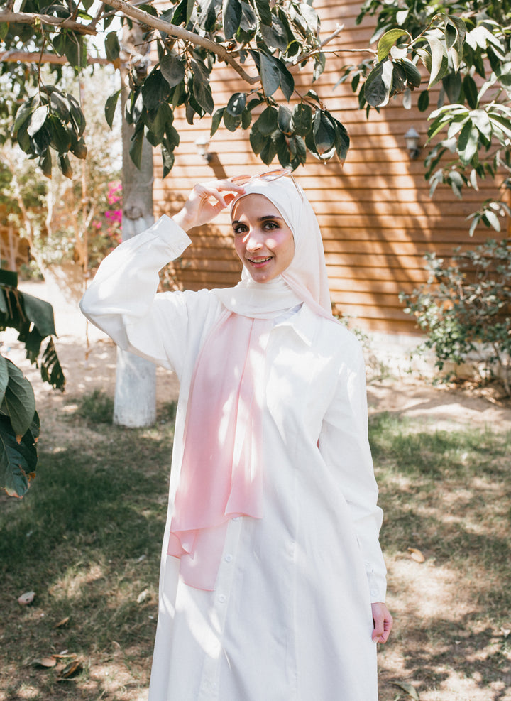 Soft chiffon hijab with a beautiful rose powder gradient. Lightweight, flowy, and perfect for everyday elegance or special occasions.
