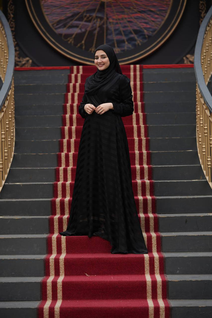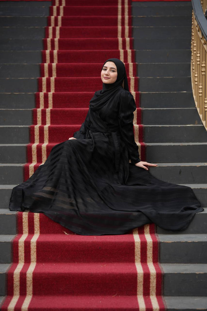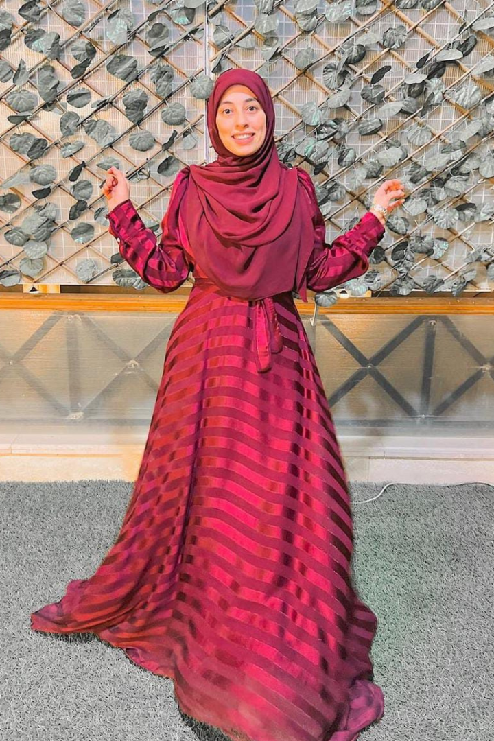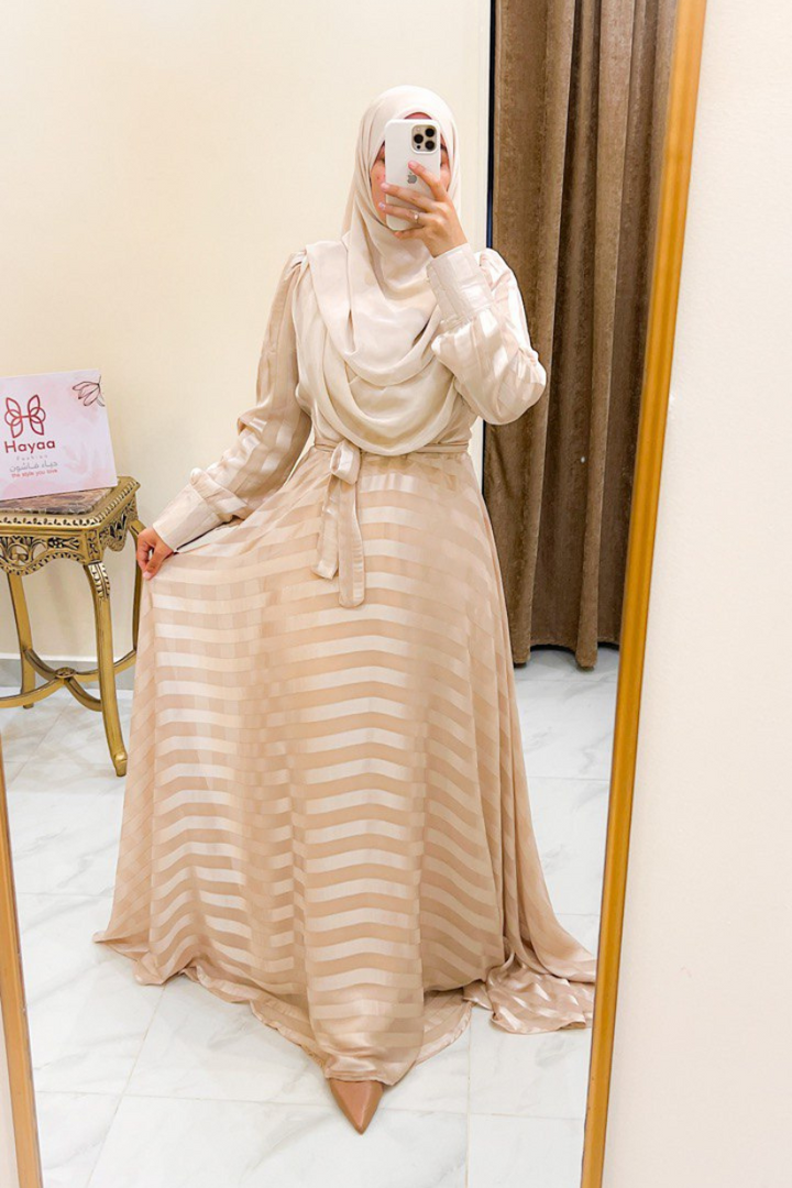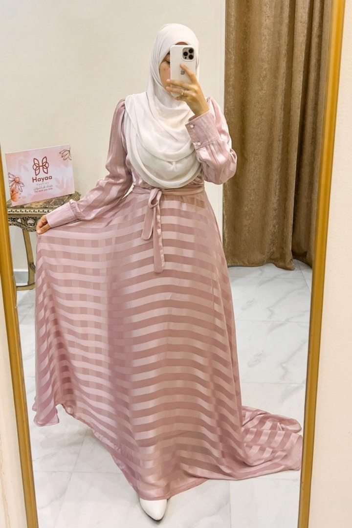 فستان ستان مطعم بأقلام عريضه من الشيفون