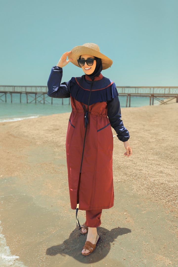 خامة ممتازة وتقفيل فوق الممتاز- به حزام فى الوسط يمكن قفله للتضيق او فتحه- تصميم رائع مزود ب فلونه على الصدر تعطيه رونق مميز