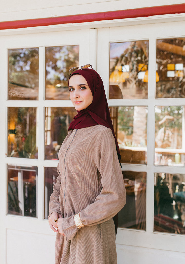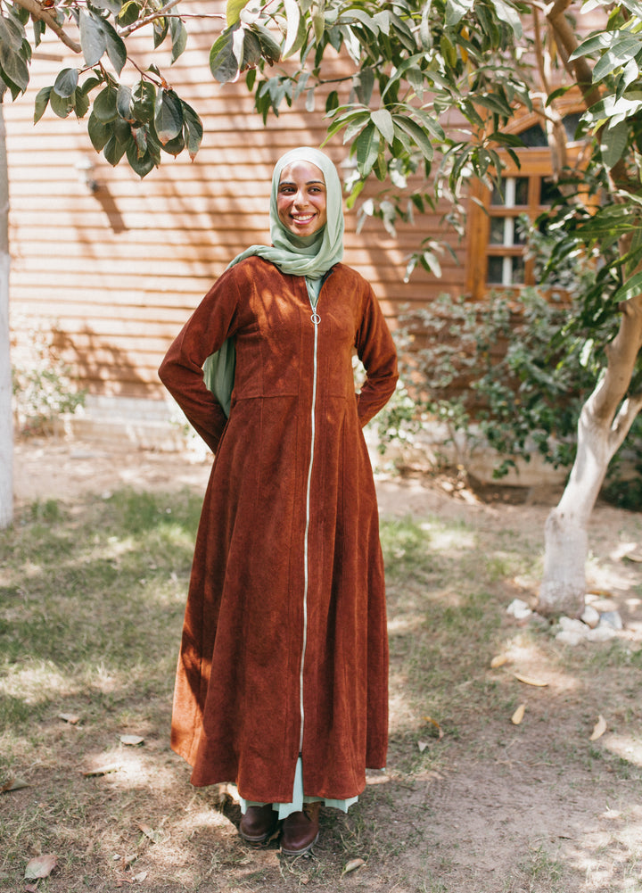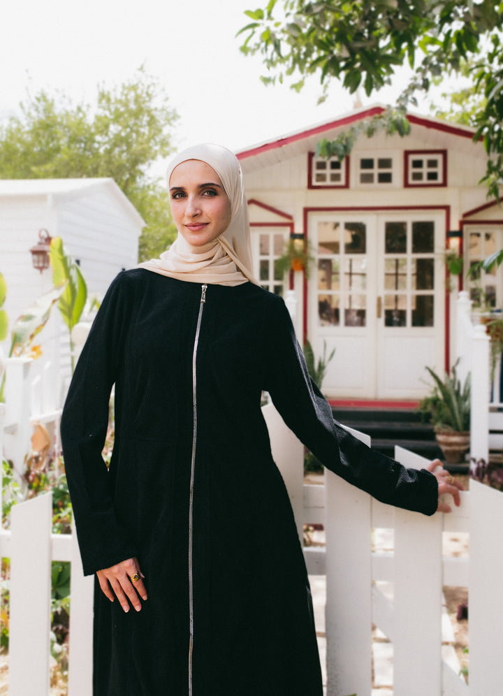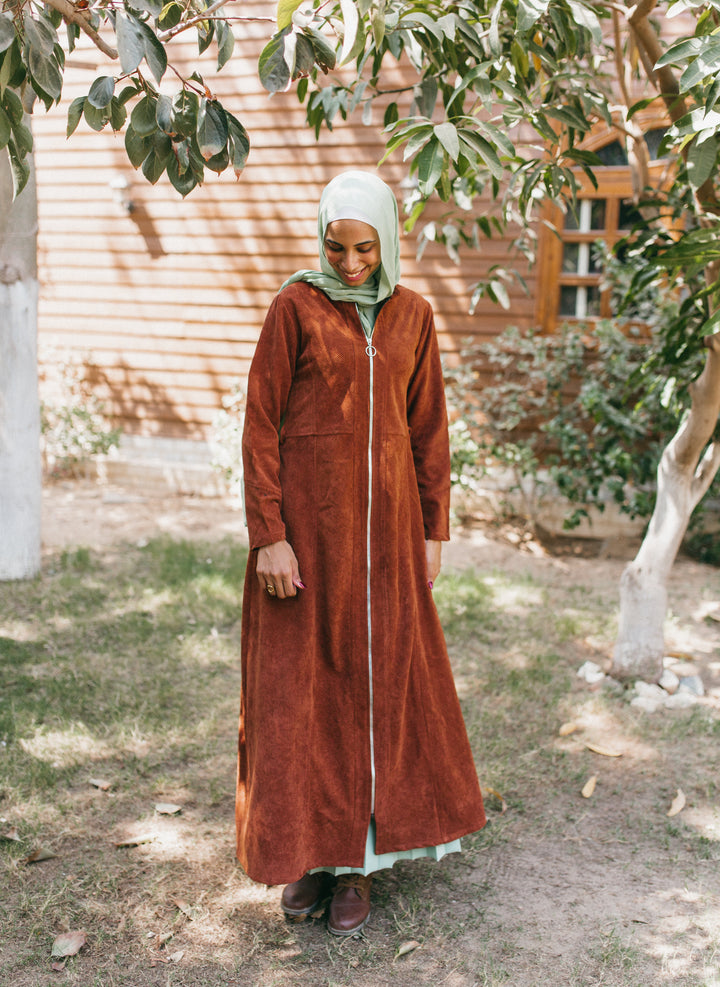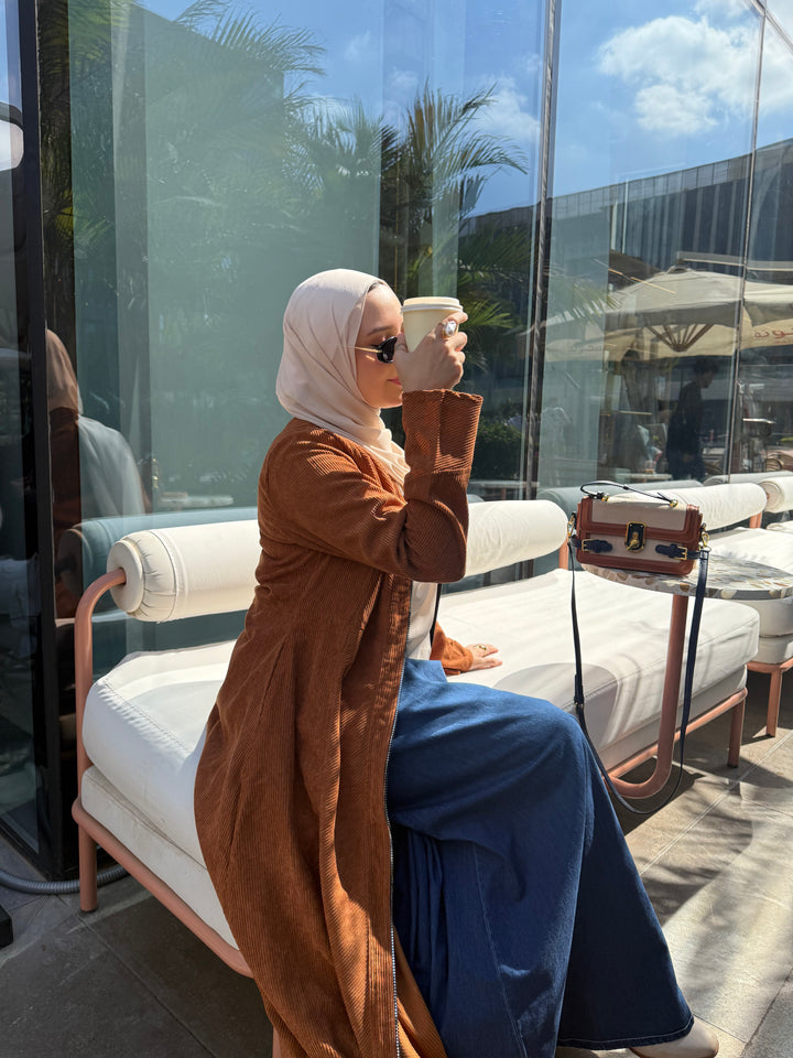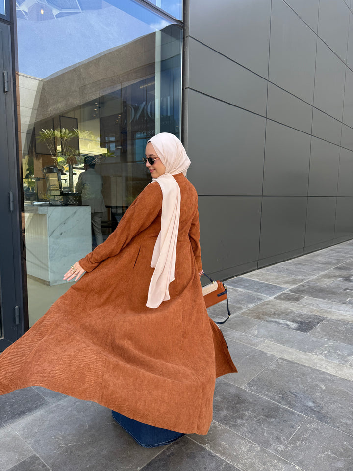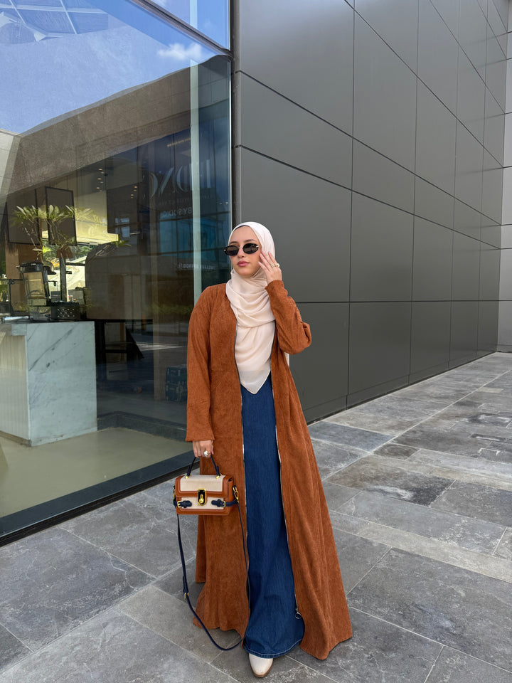 Stay chic and modest with this ribbed suede manto. Designed with a soft texture and elegant flow, it’s perfect for layering in everyday and special looks.